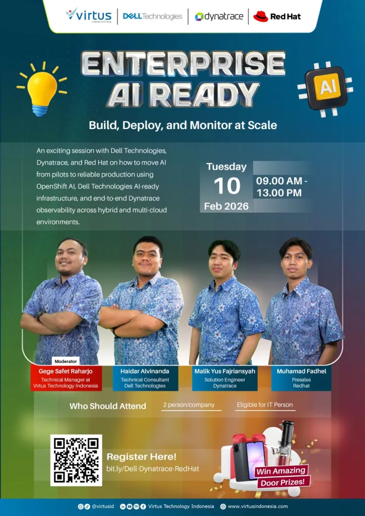 🚀 Saatnya membawa AI Anda naik level Enterprise AI Ready Event Build, Deploy, and Monitor at Scale Sebuah sesi eksklusif bersama Dell, Dynatrace, dan Red Hat yang akan membahas bagaimana membangun, menjalankan, dan memonitor solusi AI secara andal menggunakan OpenShift AI, Dell AI-Ready Infrastructure, serta end-to-end observability Dynatrace di lingkungan hybrid & multi-cloud. 📅 Selasa, […]